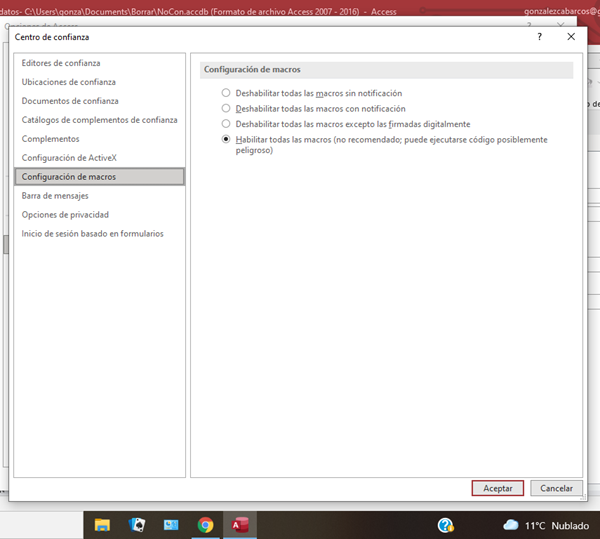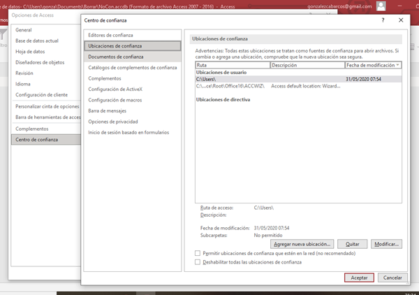 Como yo me fío de mi ordenador tengo puesto todo él como ubicación de confianza. Pero puedes pulsar Agregar nueva ubicación y seleccionar la carpeta donde quieres guardar el archivo Excel.