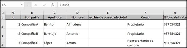 Archivo de Excel sin encabezado