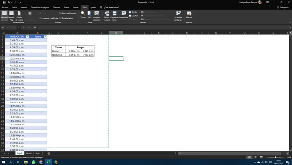 Espero me puedan ayudar, tengo una base de datos en un hospital puedo calcular a través de una hora en excel y que me muestre como resultado diurno y nocturno, teniendo en cuenta que de 07:00 a.m. - 07:00 p.m es un turno diurno y de 07:00 p.m. - 07:00 a.m. Es turno nocturno. Lo he tratado de hacer con la función Si pero no me sale.