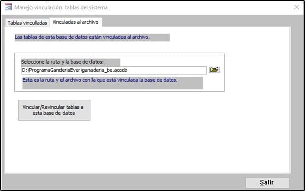 Tengo un archivo de BBDD con todos los objetos, menos las tablas (Gestion. Accdb). Y otro archivo que contiene solo las tablas (GOdatos. Accdb). Estas tablas aparecen vinculadas en el archivo principal (Gestion. Accdb) y ambos archivos están en la misma carpeta.