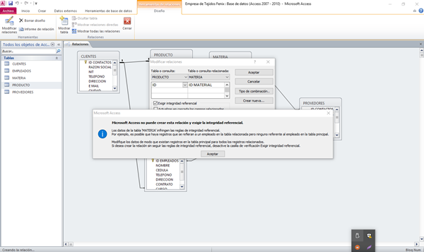 Buenos dias intento crear una relacion entre estas tablas pero me dice ese error