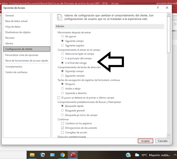 Tengo instalado Access en un nuevo equipo y me esta ocurriendo que en los campos Alfanuméricos al escribir me sobrepone los caracteres uno encima de otro sin avanzar el cursor y solo aparece el ultimo carácter escrito.