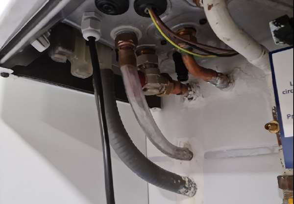 Sople por si era una obstrucción, y se iye ruido de agua en el interior de la caldera.