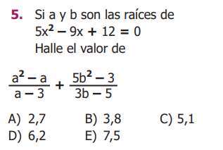 Si a y b son las raíces de :5x2 – 9x + 12 = 0 Halle el valor de: