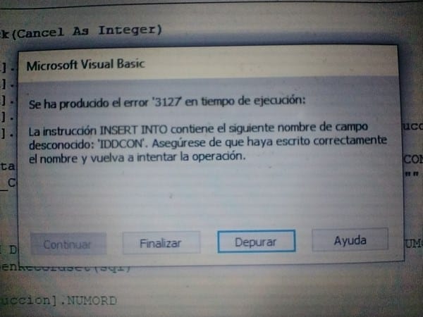 La verdad es que no entiendo el porqué de este error si la tabla de origen tiene el campo.