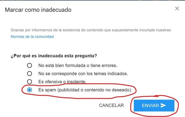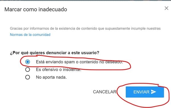 He visto que no hay forma de denunciar spam, ni ofertas publicitarias y me llama mucho la atención que nadie haga nada