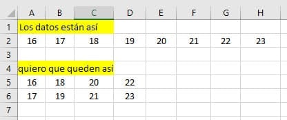 Quiero poner los datos en columnas (sin columnas en blanco) de forma que los valores queden de la siguiente forma: