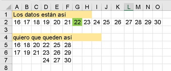 En Excel trasponer con saltos