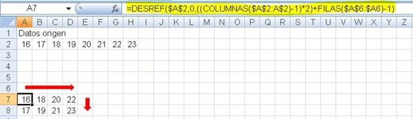 ¿Cuál es la "fórmula" que tendría que aplicar en las celdas A7 y B8 para poder luego usarla en el resto de las columnas?