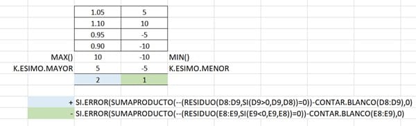 Tengo una tabla donde dependiendo la situación me salen números positivos o negativos, en una parte de la tabla, uso una formula que me dice cuantos números son múltiplos, de solo una lista de 2 números, mi problema es que los números negativos no funcionan pero los positivos si, no entiendo por que, si yo sustituyo las fórmulas de los números negativos y los escribo manualmente entonces si funciona pero no entiendo la razón, ya que los positivos, con todo y las fórmulas funciona muy bien.