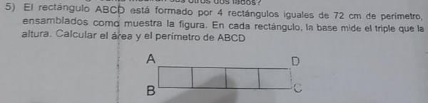 Nos dice que la base de cada rectángulo es tres veces al altura. Si llamamos a la altura POR la base sera 3x.