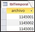 ' CurrentDb.Execute "INSERT INTO tblTemporal(archivo) VALUES(" & mid(archivo.Name, 1, 7) & ")"