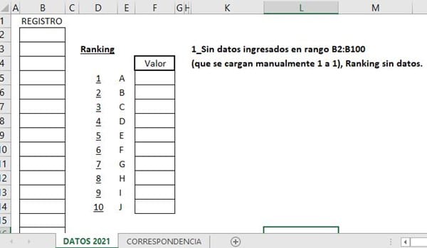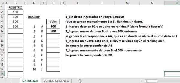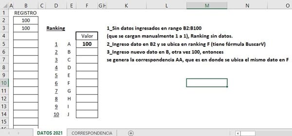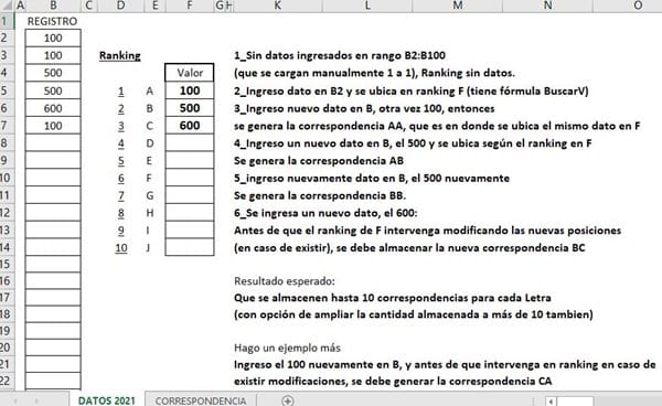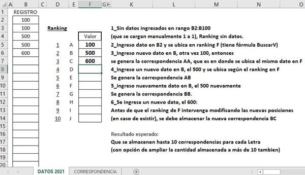 Tener en cuenta que los datos son dinámicos y las secuencias que se graven no deben recalcularse al cambiar los valores del ranking.