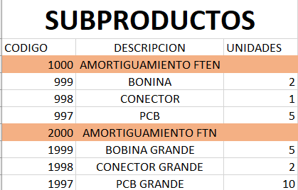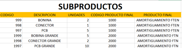 Mi cuestión es: si yo se subproductos se necesitan para componer o formar ese producto final, como se los resto del stock.