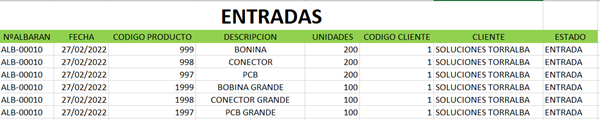 Tenemos otra tabla de entradas (albaranes), solamente entran subproductos esa es sencilla.