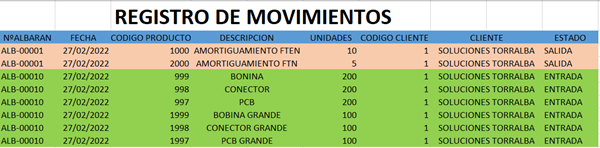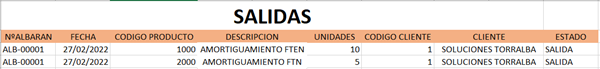 Luego tenemos otra tabla de salidas (albaranes), en esos albaranes solamente nos piden productos finales ejemplo: