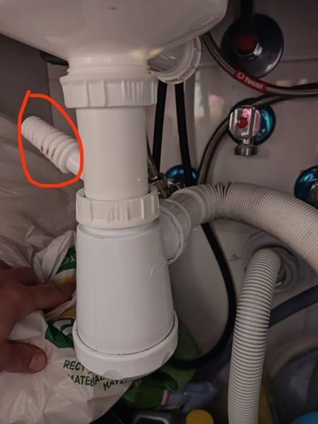 Del fregadero pierde agua por el escape del sifón. Concretamente, por el área redondeada de las fotos. ¿Alguien tiene alguna idea de por qué pasa esto? ¿Y cómo arreglarlo?