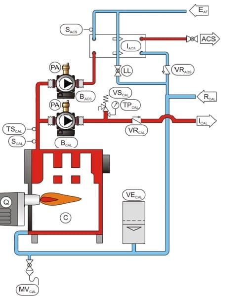 En mi anterior caldera cuando pasaba esto ya sabia que era la válvula de tres vías pero esta caldera tiene una bomba para el acs y otra bomba para calefacción y no la tiene entonces estoy más perdido. El caso es con modo acs y calefacción activado en la caldera pero con el termostato apagado por lo que la caldera esta apagada y el y la bomba de la calefacción no arranca tengo los dos primeros radiadores uno templado es más grande y otro caliente es más pequeño por lo que entiendo que se cuela agua caliente del acs lo que no se que pieza hay que sustituir al no tener la válvula de 3 vías.