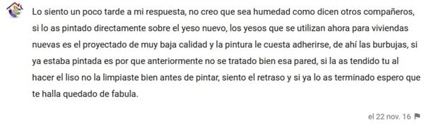 Para la segunda mano he probado un empaste ya formulado y me pasa lo mismo. En la tienda me dicen que puede ser la humedad, pero las paredes están muy secas y he esperado varios días antes de aplicar la segunda capa.