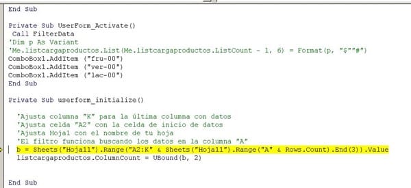 If j > 0 Then listcargaproductos.List = b