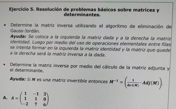 Problemas básicos sobre matrices y determinantes.