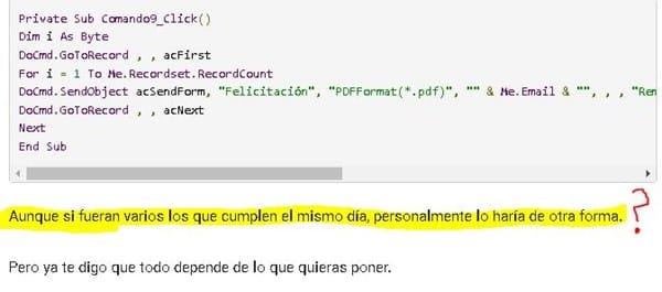 Enviar por e-mail felicitaciones en access