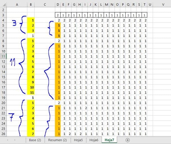 Pero debes conservar la lógica de la numeración de cada parte de la fórmula y siempre poner el doble 1 al final de tus datos.
