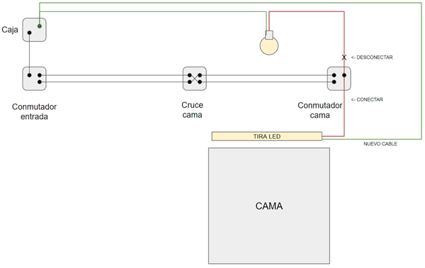 He montado un cabecero en mi habitación, y he comprado una tira de luz led que me gustaria poder accionar desde los interruptores de la habitación.