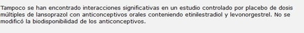 ¿1 lansoprazol puede reducir el efecto de las pastillas anticonceptivas?