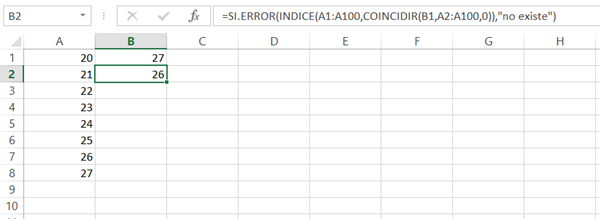 Esa seria una columna con datos, si en B1 pondo 23, necesito que en B2 me devuelva 22, si pongo 22, de devuelva 21 y así.. Justo el valor que esta en la celda superior al valor que busco. Siempre en la misma columna.