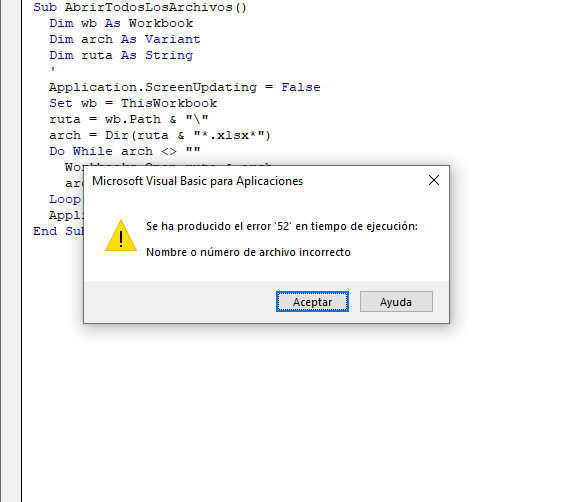 Me encuentro desarrollando un macro, y en uno de los pasos quiero abrir todos los archivos de excel que, se encuentran en la misma ruta que se encuentra la macro.