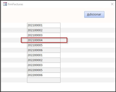 Observe que me aparece el número que faltaba para este prefijo (2021). Ahora si vuelo hacer clic en el botón Adicionar e ingreso nuevamente el prefijo "2021" obtengo:
