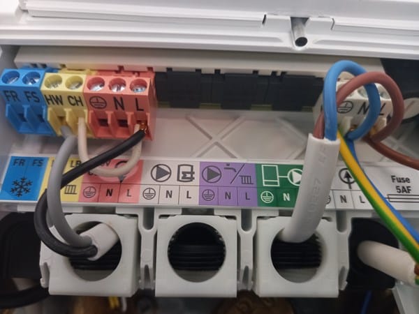 No consigo enterarme con las otras preguntas que he visto sobre esto. El instalador me conectó el Netatmo inalámbrico a la Junkers CerapurExcellence Compact ZWB 30/32-1, pero no me funciona bien, como que el relé no es capaz de cortar cuando se supera la temperatura indicada. Pongo por aquí una foto con las conexiones de los cuatro cables por si hay algo mal y tiene solución.
