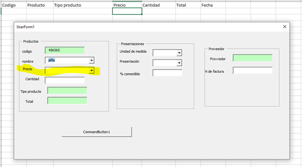 Tengo una hoja de calculo donde hay 2 columnas con datos numéricos la idea es que cuando seleccione un dato en mi caso particular el de menor valor me realice una multiplicación ejemplo columna D(precio1) columna E(precio2) columna F(cantidad)con un combobox selecciono en mi caso la columna que tenga el menor valor y lo multiplico con la columna "cantidad" todo esto realizado en un formulario envío el código de lo que e tratado de hacer y no me dan los resultados esperados quedando muy agradecido con tan maravilloso foro de antemano muchas gracias
