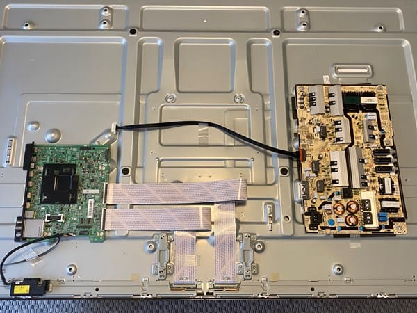Tengo una Samsung de 75 pulgadas. El otro día primero me aparecieron rayas finas horizontales en la tele. De arriba a abajo, muy finas y todas iguales. La TV se seguía viendo *bien* pero si te acercabas veías las mil rayas. Un par de días más tarde se apagó. Ahora al encenderla la pantalla esta en negro pero se nota que tiene luz. La he abierto y los leds luminosos están encendidos. He comprado la misma placa main (la verde grande), la he cambiado pero igual. ¿Puede ser la t-con? ¿Alguna pista?