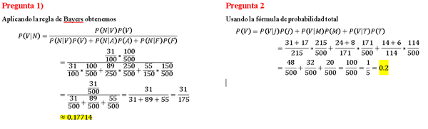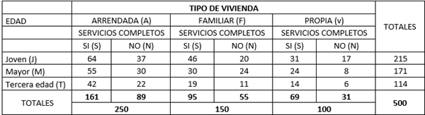 De acuerdo con la información consignada en la tabla de contingencia responder las siguientes preguntas, traduciéndolas antes al lenguaje simbólico apropiado, usando la ecuación o teorema solicitado y haciendo uso de una calculadora para los cálculos finales.
