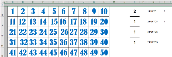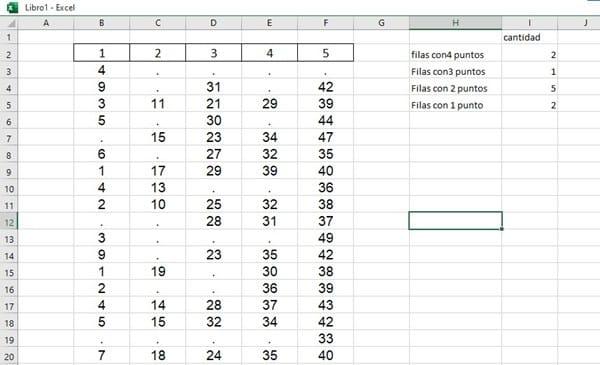 Quiero hacer un conteo de los números que voy marcando, a estos números yo los busco y reeplazo por un punto, quiero que en otra parte de la misma hoja me valla mostrando cuantas filas llevan marcadas 1, 2, 3 y 4.