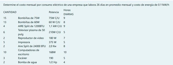 Determinar el costo mensual por consumo eléctrico de una empresa que labora 26 días en promedio mensual y costo de energía de