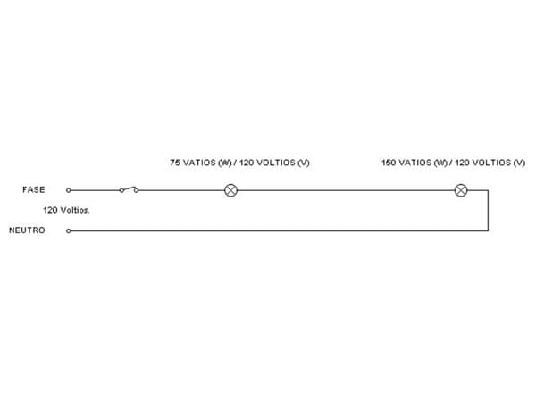 Ahora, utilizamos los valores dados por tu Profesor en los componentes del circuito... como si conectaras esas bombillas, una a una, directamente a una fuente de 120v =