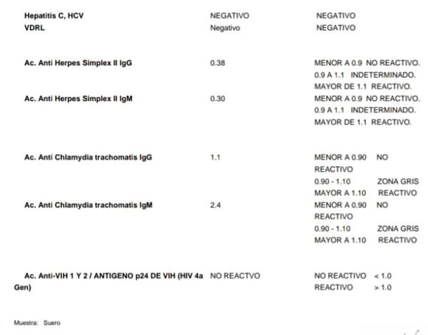 Me hice estos examenes despues de 26 a 29 dias de la ultima relacion sexual pues mi medico la autorizo, solo que no se leerlos bien y me preguntaba si alguien me podia ayudar a leerlos, de antemanos siento que clamidia si que esta positiva pero mi duda es con el herpes, segun yo es negativa pero no se, si alguien puede ayudarme estaria muy agradecida..