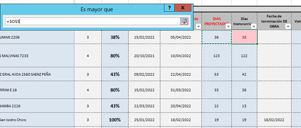 Estoy tratan de aplicar un formato condicional en una celda pero dependiendo del valor de la celda de la izquierda. El tema es que quiero que el formato aplique en toda la columna y no puedo porque me toma fijo el valor referencial de la primera celda.