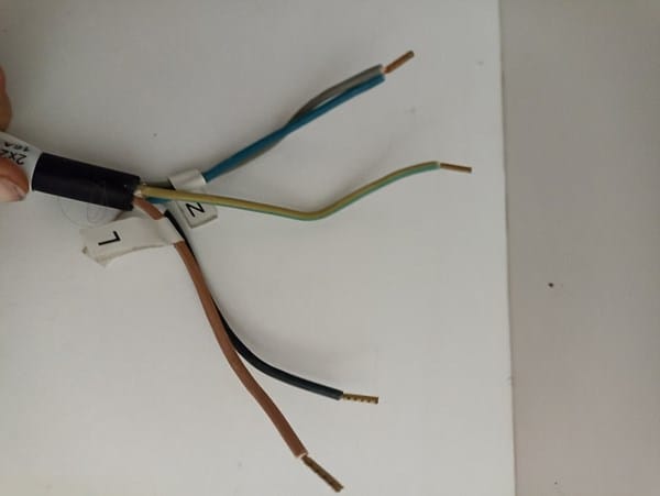 Estos son los cables que salen de la pared (Cable gris, cable negro y tierra) : Ni caso a los colores de los empalmes que solo estaban para alargar el cable y el de abajo es el mismo tierra que el de arriba. Hay uno de tierra, uno F y otro N, ya está. Estos sí que se cómo ponerlos en la base del enchufe.