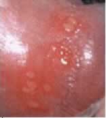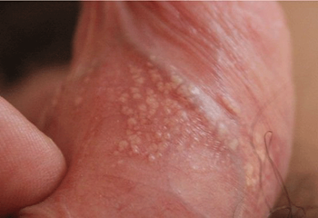 I. Hola Compañero, no soy experto ni conocedor pero podrían asemejarse a vesículas o ampollas transparentes, de ser así pienso que puede tratarse de algún tipo de herpes, es decir, una infección en principio bacteriana... pero también podría ser una alergia o dermatitis por contacto, (por el roce del tejido de la ropa, o por haber tenido el miembro un contacto con 'algo' que ha provocado esta reacción puntual, (no infecciosa),