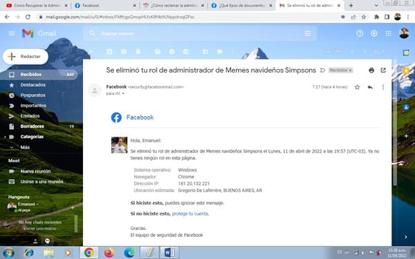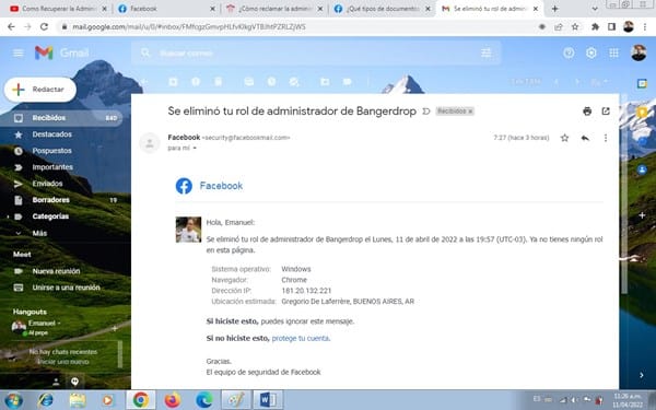 Recibí varios correos informándome que se elliminaron mi rol de administrador y no puedo subir, ni postear ni editar contenido importante en las páginas de facebookcon la cual trabajo ¿a qué se debe ser la razón? ¿Se trata de alguna especie de hackeo o robo de cuenta? Porque es muy preocupante la verdad hasta puedo perder el acceso