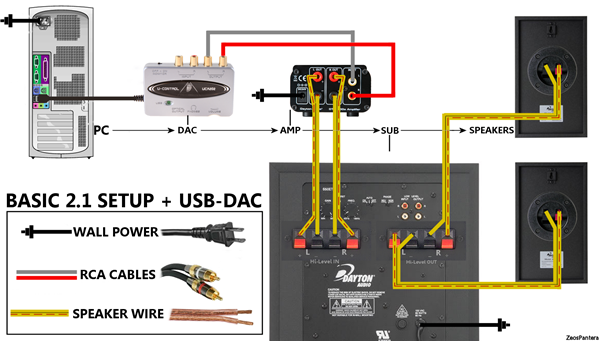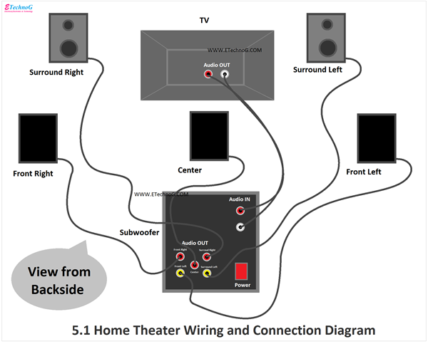 Conexión de los cables de las bocinas en el equipo 5.1 Daytron