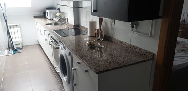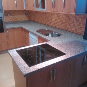 El baño lo voy a cambiar entero. Pero en la cocina quiero ahorrarme algo. Actualmente tiene encimera de granito rosa Porriño y quería que me aconsejarais sobre qué muebles le podría poner para conservar esta encimera ya que normalmente la encimera es lo más caro de una cocina. No sé si es posible mantener esta encimera y que la cocina no se vea muy antigua. ¿Alguna idea?