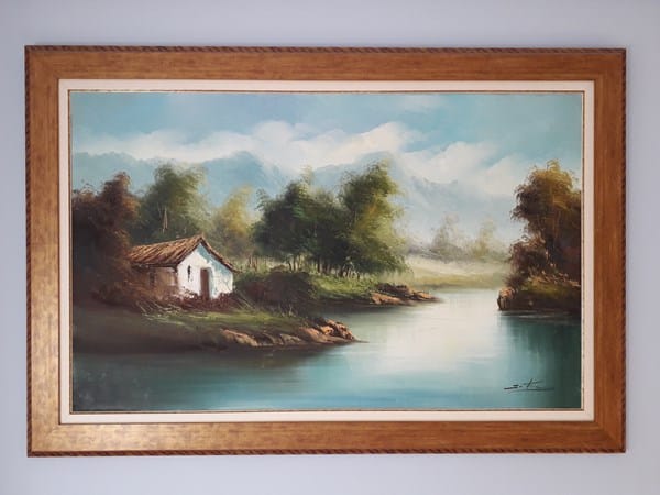 Tenemos este cuadro en casa de mis padres desde hace muchos años, es grande y en su día le cambiamos el marco. Mi padre tiene alzhéimer y ahora se le ha metido en la cabeza la idea de que es un cuadro único y que tiene mucho valor, todos los días me pregunta por el cuadro. Yo he buscado lo mejor que he podido y no encuentro nada, ¿alguien sabe quien puede ser el autor?. Muchas gracias.