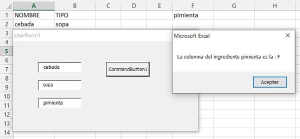 MsgBox "La columna del ingrediente " & TextBox3 & " es la : " & Split(f.Address, "$")(1)