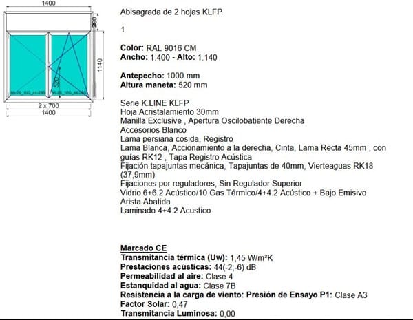 Os pongo unas fotos de las características que nos han presupestado para que las veáis, nos pondrían en todas oscilobatienes, menos una corredera por que es muy grande ( 3 metros )