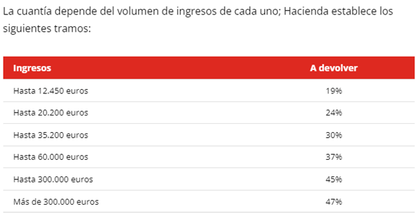 Si recibo 7000€ de ayudas correspondientes al plan MOVES, ¿tengo qué devolver el 19%? O el 37%?